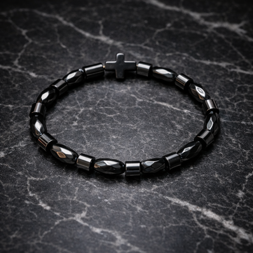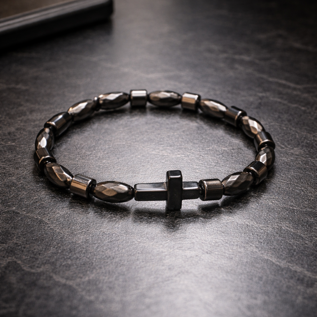 A powerful symbol of strength, faith, and protection, this handcrafted bracelet combines genuine natural hematite stones with a sleek cross centerpiece. Designed for men and women who appreciate meaningful jewelry with a modern luxury style.